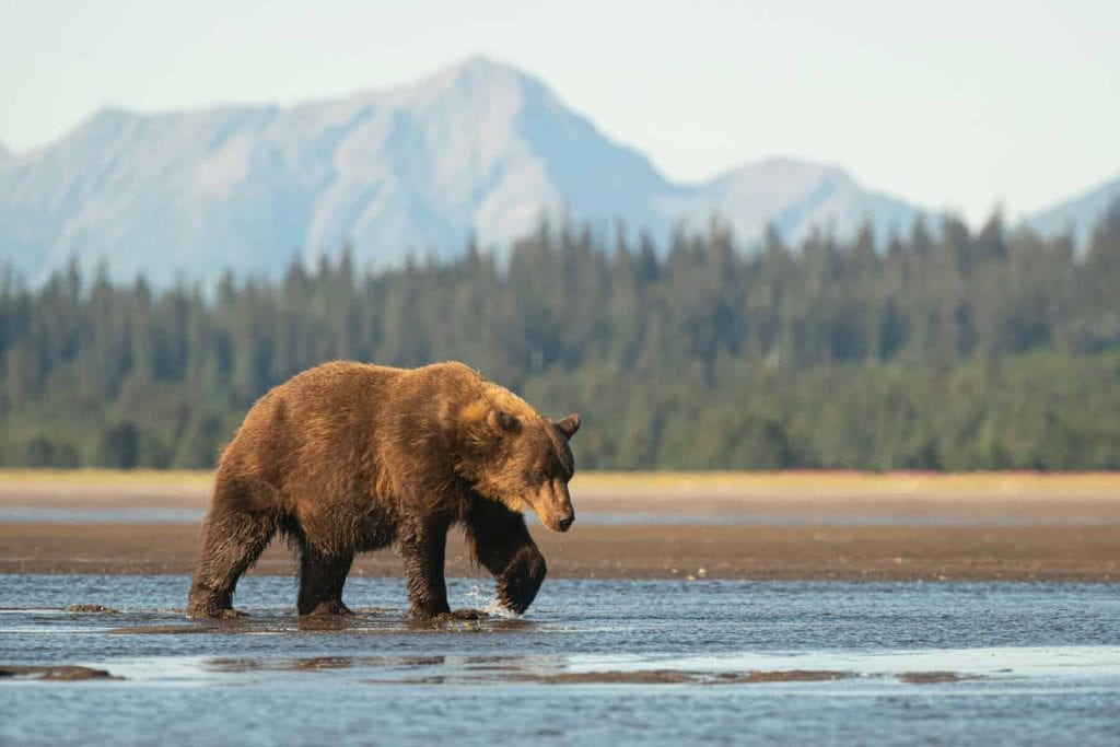 Spotting a grizzly in the wild can be both exhilarating and terrifying depending on the circumstances. Either way, coming across the massive mammal while hiking the backcountry will certainly elevate your heart rate. So make sure you are well-versed in bear safety protocol, always stay calm, and remember that unprovoked bear attacks are actually quite rare. Over the past decade only four people have been killed by an Alaskan brown bear.
