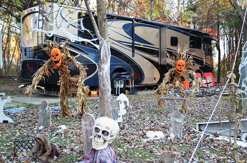 And if you take your Halloween travels by RV, you won’t have to give up that tradition! Whether you drape fake cobwebs throughout your RV’s interior or get creative with your outdoor setup, when you’re camping, your space is still your own, so you can dress it up however you see fit. So whether you simply place a few smiling Jack-o-Lanterns around your vehicle or you make it into a full-on mobile haunted mansion, don’t be afraid to get into the spirit!